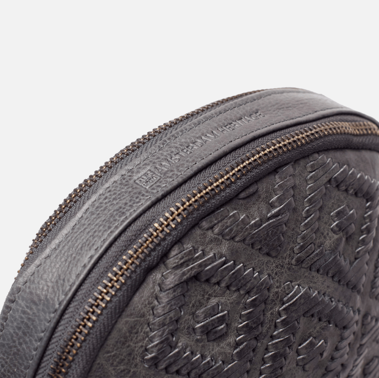 The Matser crossbody bag is designed as a lightweight, easy, on-the-go bag for every day. Crafted by artisans with meticulous attention, The Matser bag brings forward bohemian and vintage aesthetics that take their inspiration from the traditional Kilim motifs, native to the Middle Eastern cultures. Patterned with diamond shapes,this leather bag l comes with two zippered compartments , a detachable and adjustable shoulder strap, along with a small hand strap for easy use. Adorned with gunmetal colored hardware, this small leather purse combines vintage characteristics with functionality, bringing to you a nifty bag for all your essentials. PRODUCT DETAILS