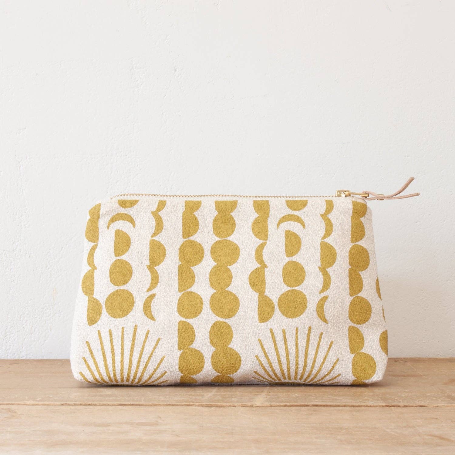 - Gusset Material: Cotton Barkcloth, Cotton Canvas Lining, Brass Zipper, Leather Pull
