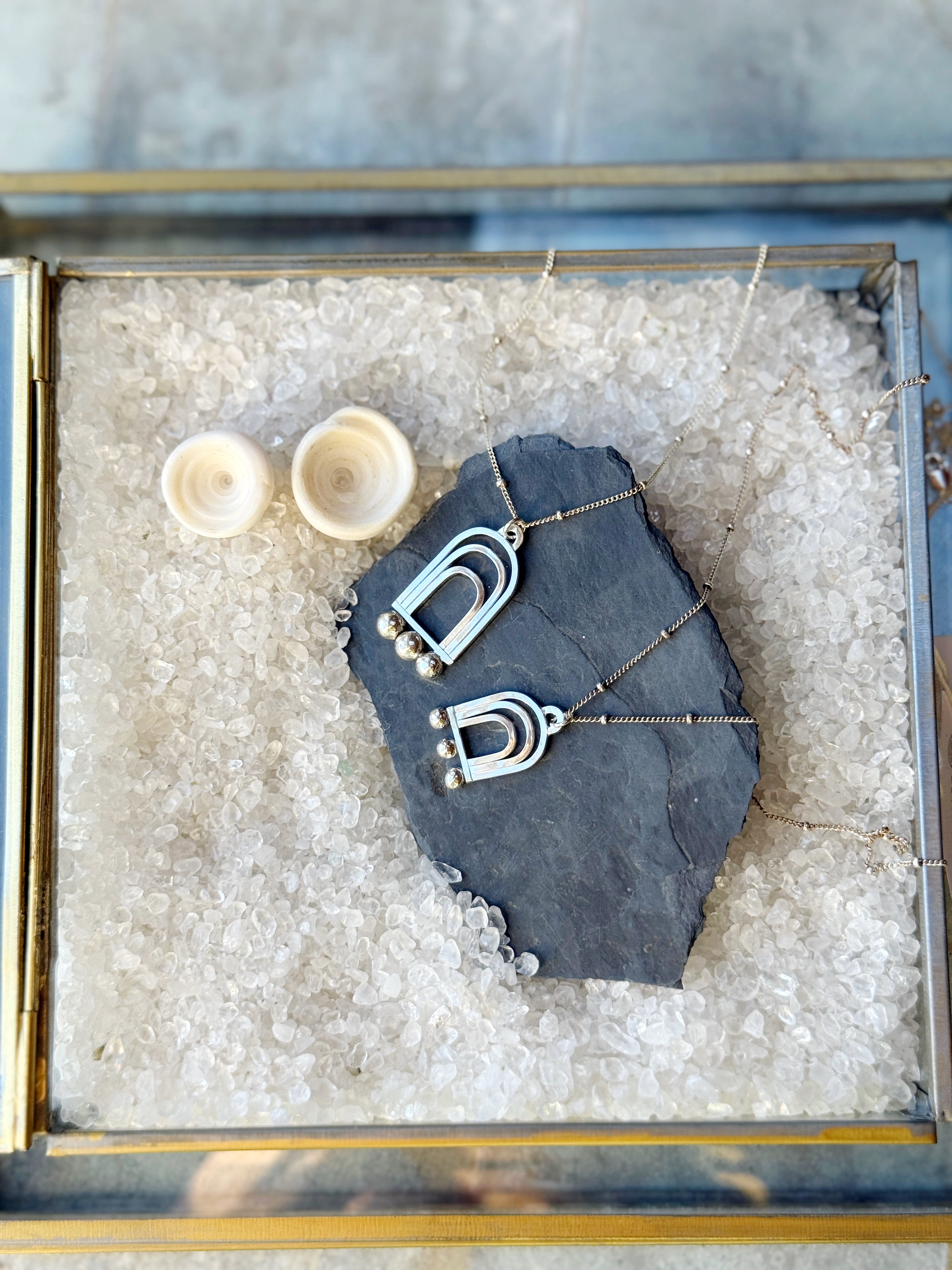 Sterling silver portals pendant necklace in two sizes, both come on 18" beaded chains.