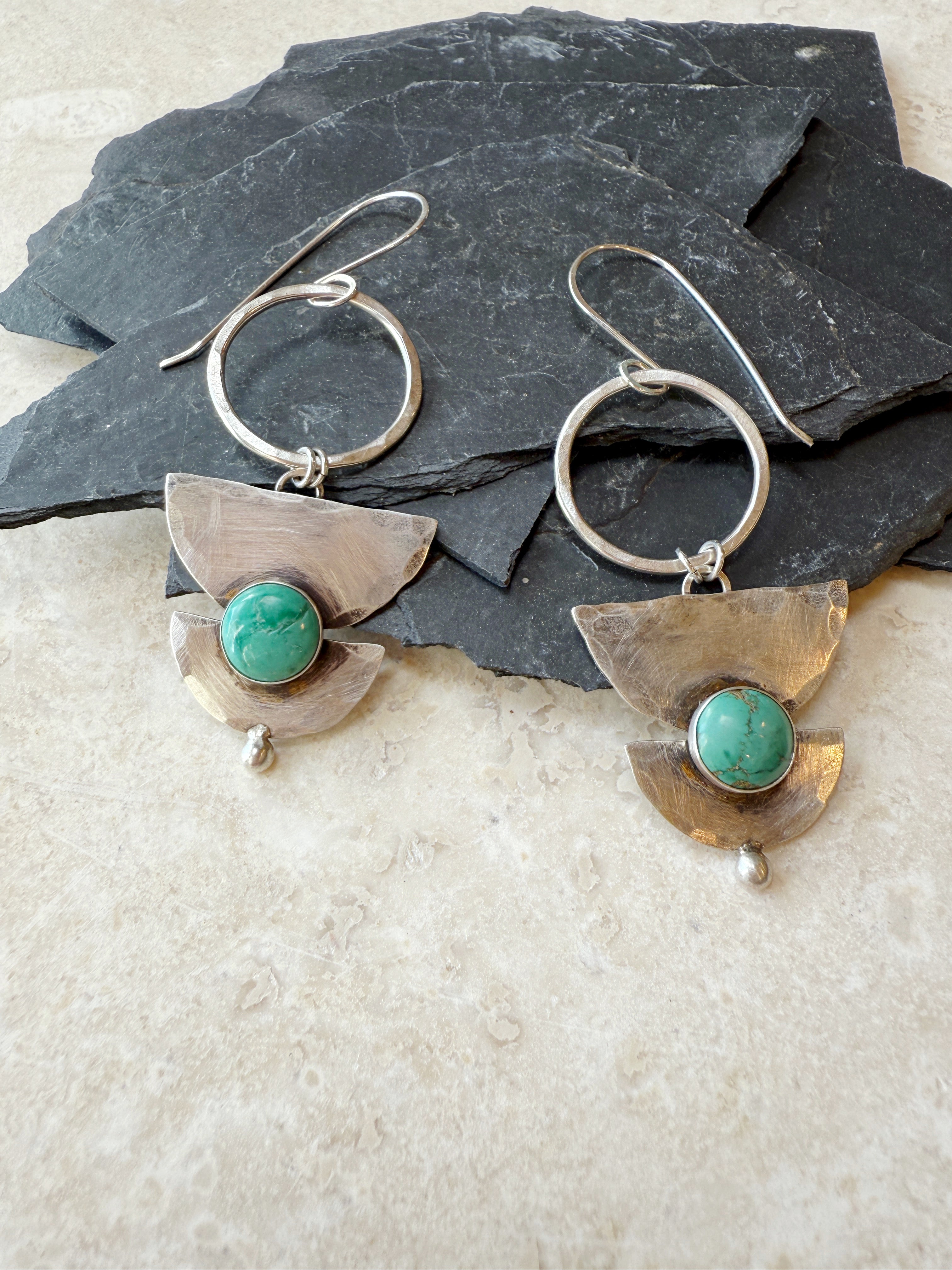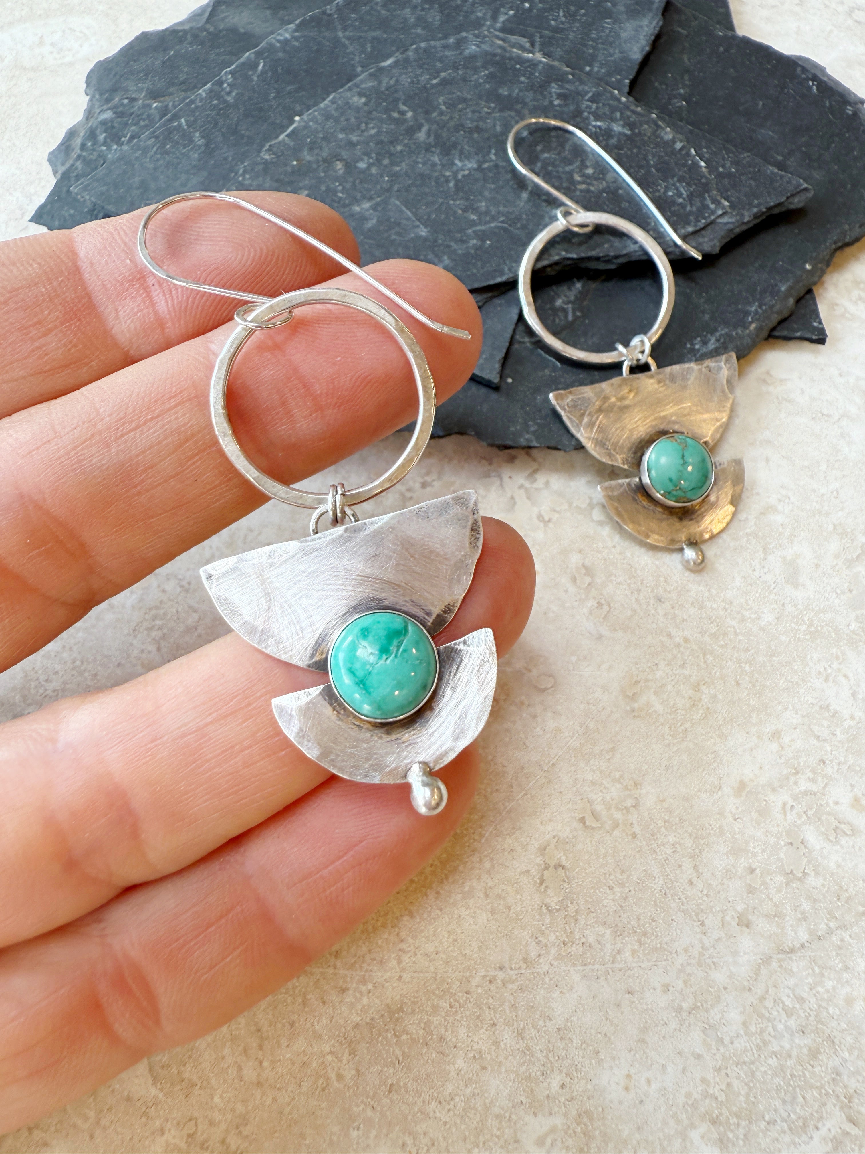 Limited edition silver and turquoise Selene earrings. Selene is the greek goddess of the moon. She drove her silver chariot across the sky every night, guided by two snow white horses.