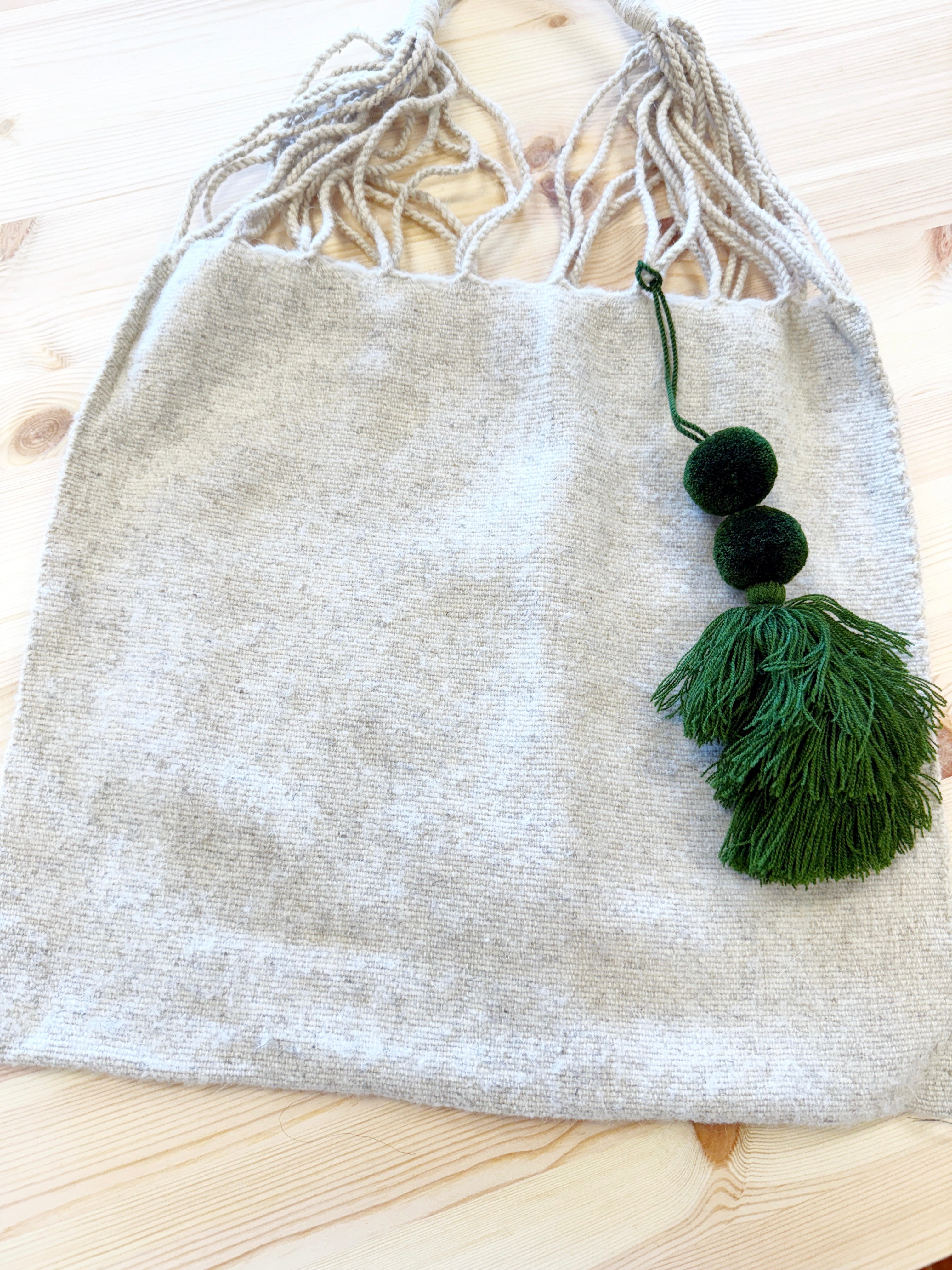 Each tote is adorned with a handmade cotton pom-pom tassel. I had the opportunity to watch these pom-poms in production while in Chiapas! It's amazing how fast their hands work, producing basically all of Mexico's pom-poms one at a time!